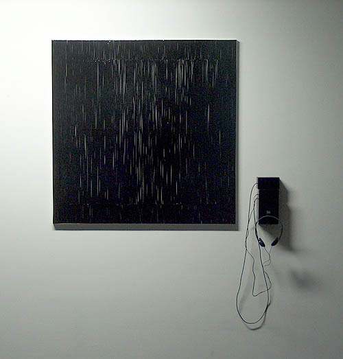 Black square on white ground is a transformation of malevichs´painting using the original measurments. cassette-tape with the words 'white' and 'black' recorded on, fixed on canvas at the original positions of the colors (black, white). By using the modified casette-player you can hear the words 'black' or 'white' while coating over the tape. presented at: Experience Art Berlin, Friedrichstrasse, Nov. 2005 Experience Art (Tu-Berlin,June 2006) |